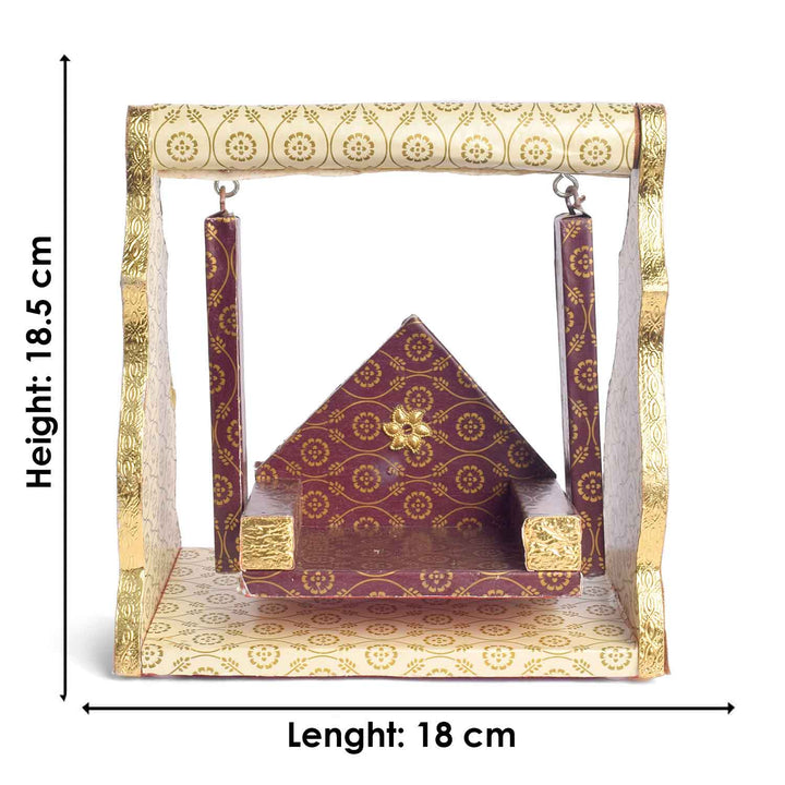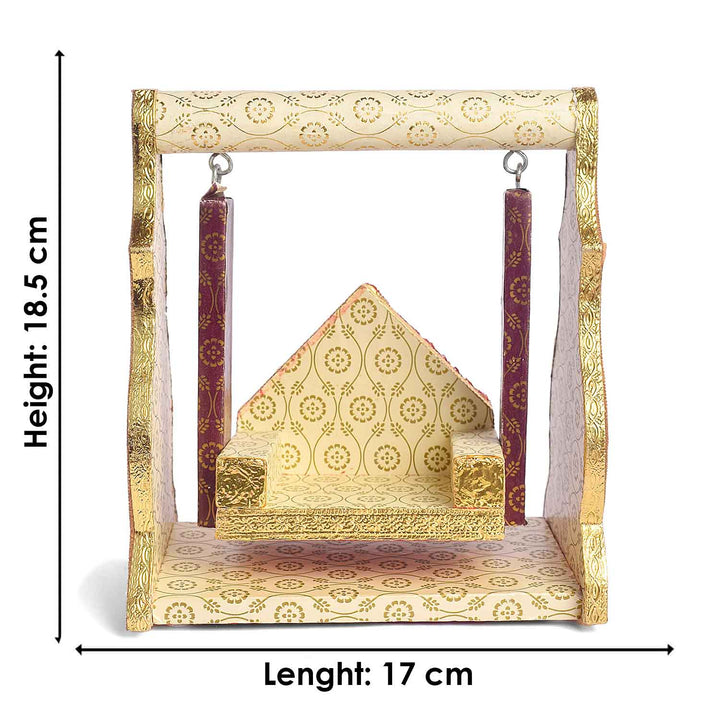 Presenting a divine blend of subtle tradition and elegant design—this Printed Design Jhula features a classic white and gold paper-covered frame paired with a cradle wrapped in rich brown printed paper. The beautiful contrast adds depth and warmth, making it a unique piece for your pooja space.