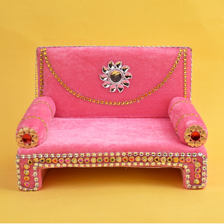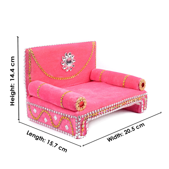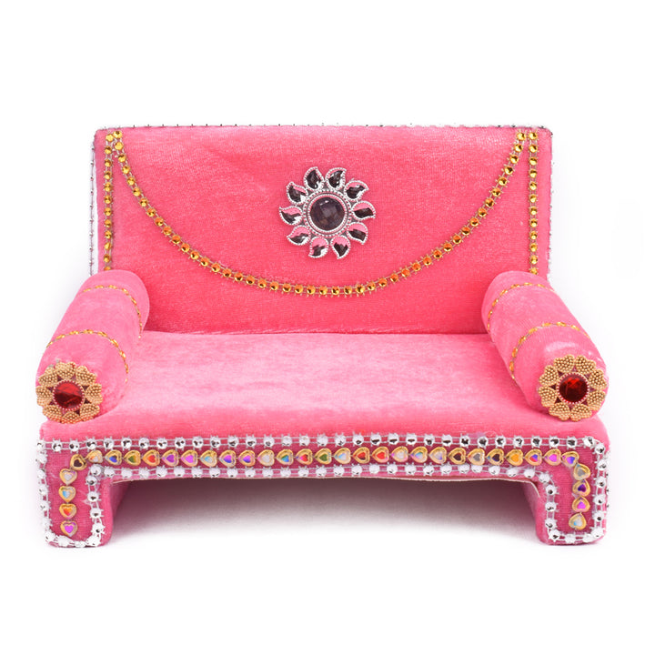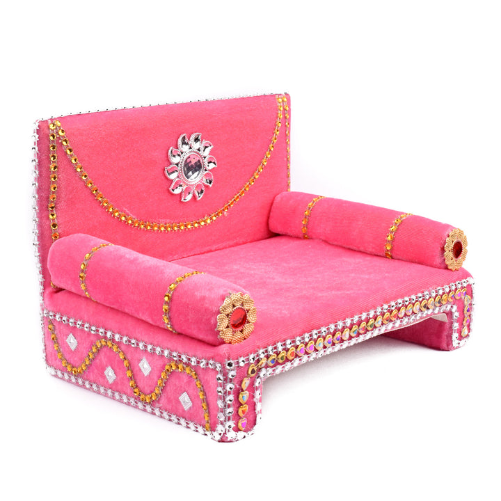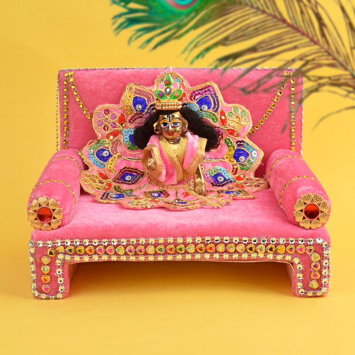 As you place your Laddu Gopal on this sacred throne, watch as the velvet embraces the little lord, showering blessings and grace upon your home. Its charming allure and captivating design make it a true centerpiece of devotion, adding a touch of splendor to your worship space.