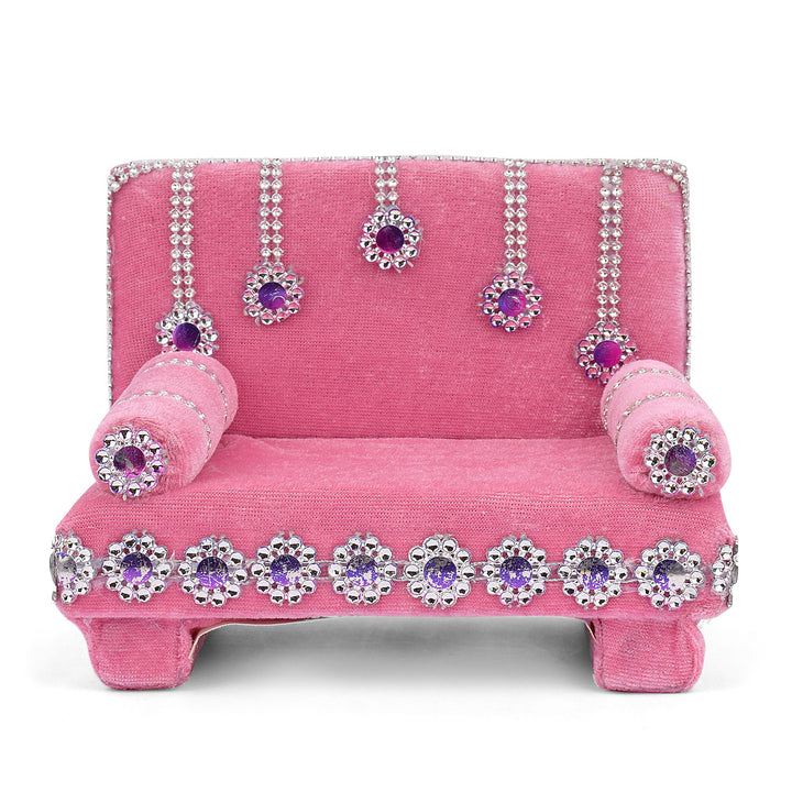 As you place your Laddu Gopal on this sacred throne, watch as the velvet embraces the little lord, showering blessings and grace upon your home. Its charming allure and captivating design make it a true centerpiece of devotion, adding a touch of splendor to your worship space.