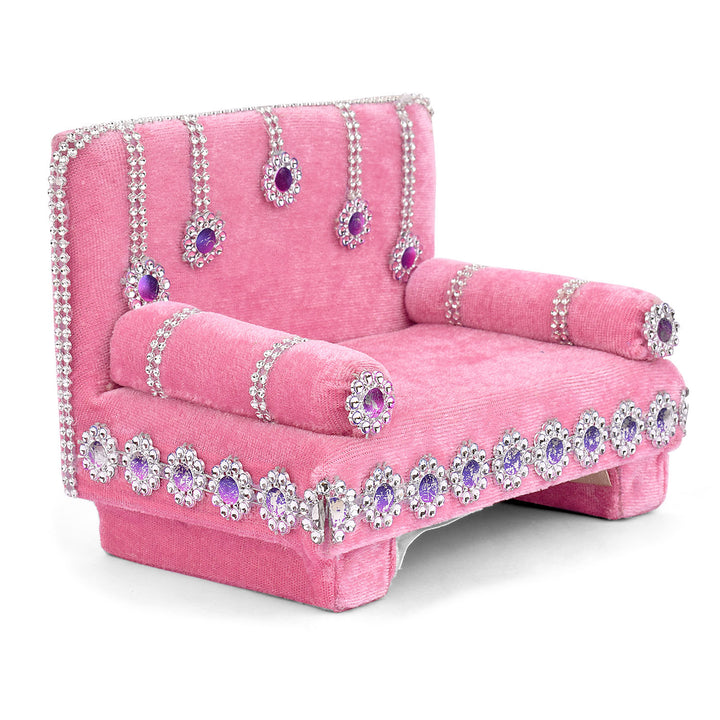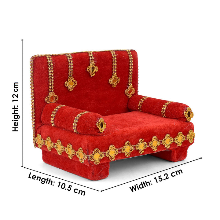velvet laddu gopal singhasan | small krishna throne | red velvet deity seat | pink singhasan for bal gopal | pooja singhasan for laddu gopal | divine kanha ji singhasan | soft velvet krishna throne | small size pooja decor | laddu gopal singhasan velvet | satvikstore pooja accessories