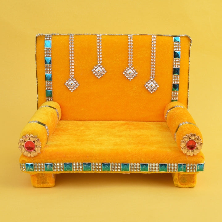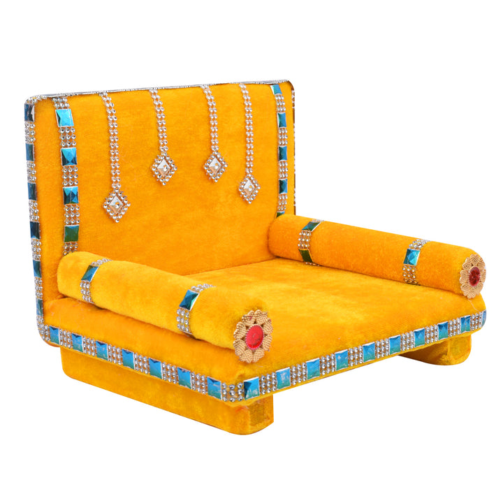As you place your Laddu Gopal on this sacred throne, watch as the velvet embraces the little lord, showering blessings and grace upon your home. Its charming allure and captivating design make it a true centerpiece of devotion, adding a touch of splendor to your worship space.