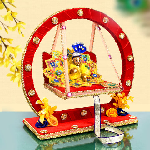 Celebrate Nandotsav with beautifully designed Jhulas for Kanha Ji. Choose from wooden, metal, and meenakari swings β perfect for Laddu Gopal during Janmashtami puja and decoration.