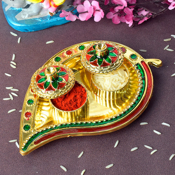Shop Now | Leaf-Inspired Kumkum Holder with Precision | Satvikstore.in – satvikstore.in