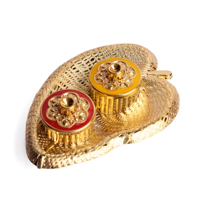 • Item Name: Leaf Shape Kumkum Dispenser for Rituals