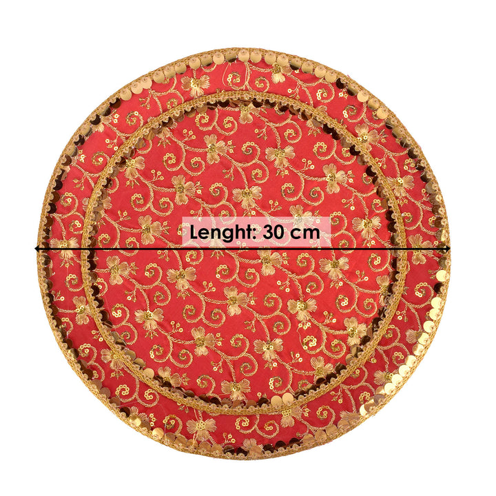 Elegant Red Embroidery Karwa Chauth Thali Set -3pc|Shopt at satvikstore.in