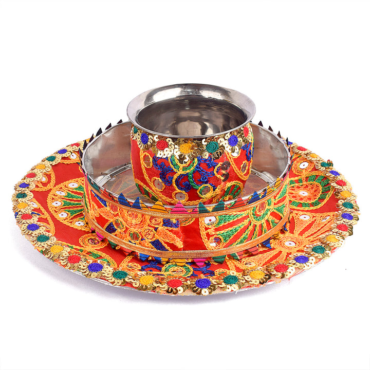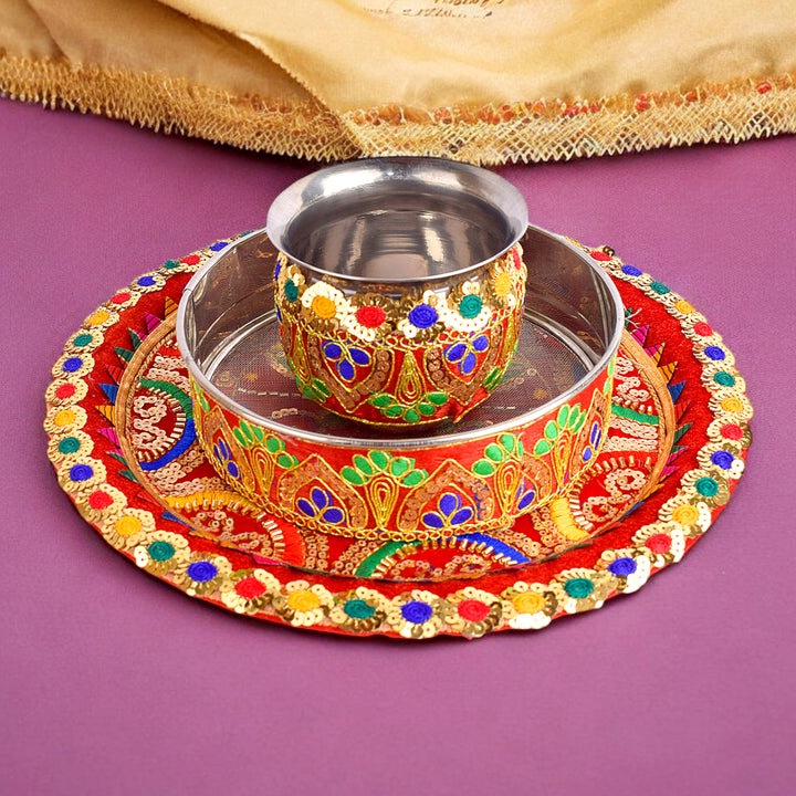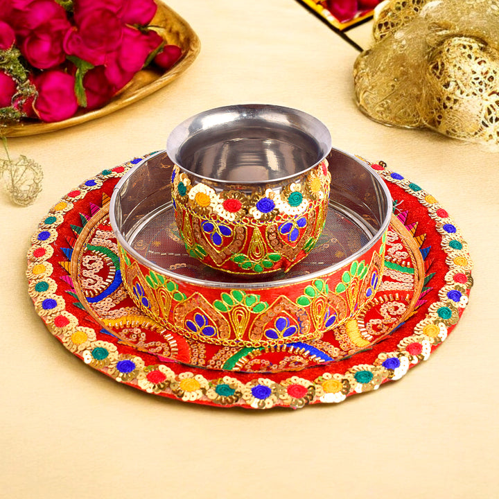 Festive Colorful Karwa Chauth Thali Set - 3pc