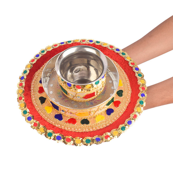 Item Name: Radiant Multicolor Karwa Chauth Thali Set- 3pc