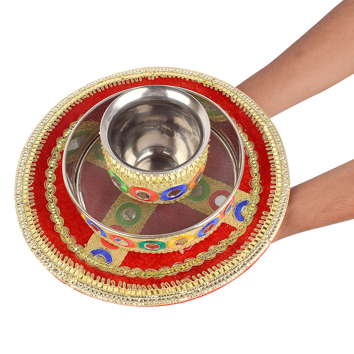 Item Name: Red Karwa Chauth Thali Set with Elegant Unique Design