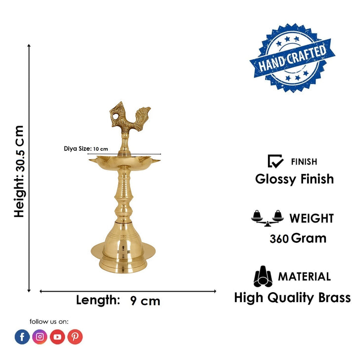 12 Inch Brass Peacock Kerala Diya | Brass Peacock Diya | Kerala Pooja Lamp | Brass Deepam | Traditional Brass Diya | Spiritual Brass Lamp | Pooja Diya | Kerala Temple Lamp | Handcrafted Brass Diya | Brass Oil Lamp | Peacock Design Diya | Indian Ritual Lamp