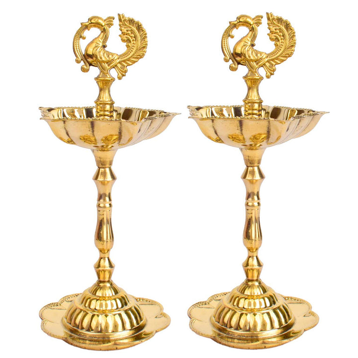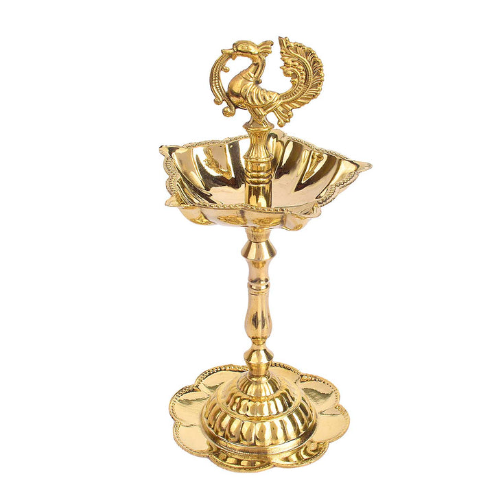Buy 6.5–7 Inch Peacock Kerala Flower Stand Brass Diya | Satvikstore.in – satvikstore.in