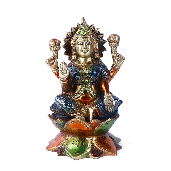7.4 Inch Artistry Brass Colorful Lakshmi Ganesha Idol