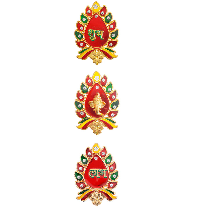 Item Name: Beautiful Leaf Shubh Labh and Ganesh Stickers  Set of 3