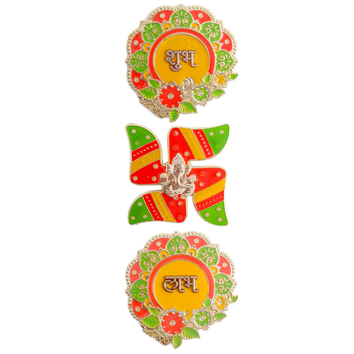 Item Name: Glistening Round Shubh Labh and Swastik Stickers set of 3