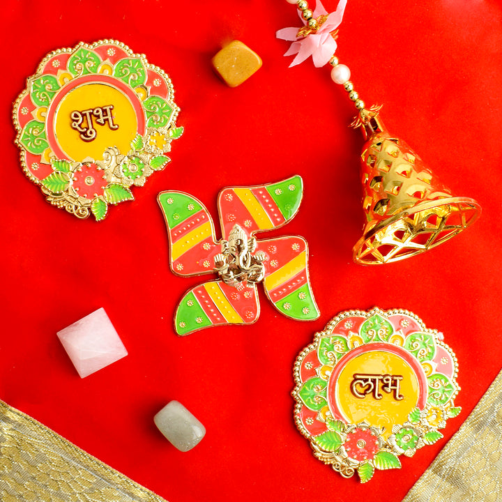 Glistening Round Shubh Labh and Swastik Stickers set of 3