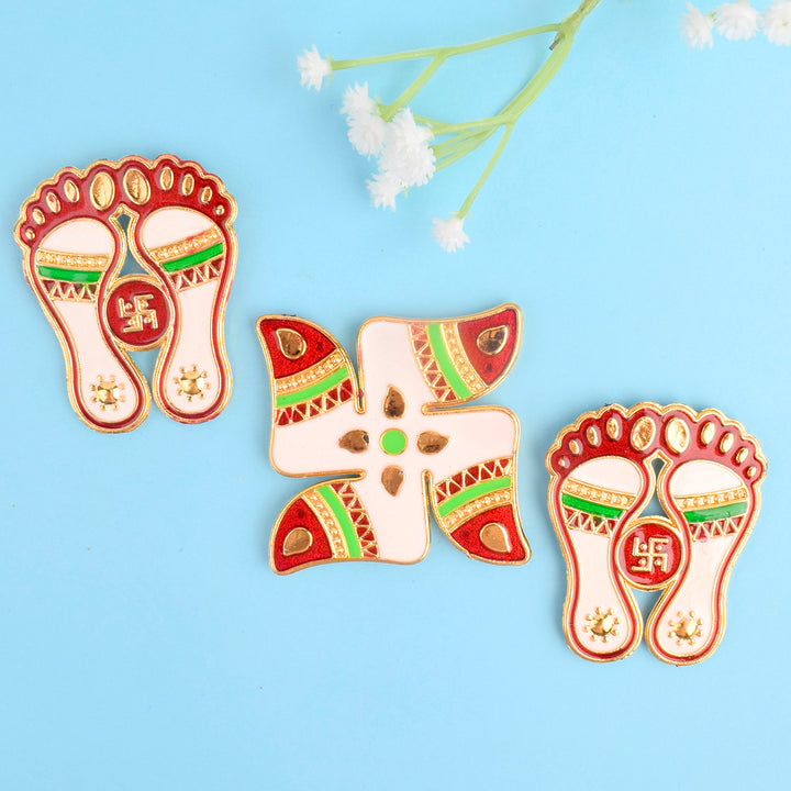 Item Name: Luminous Joy Swastik and Charan Paduka Stickers set of 3