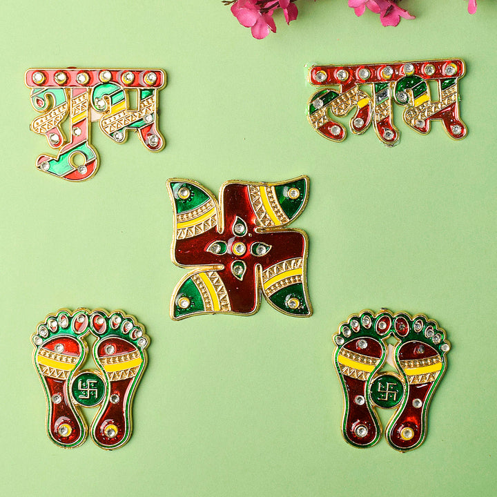 Crafted with meticulous attention to detail, these stickers feature the traditional Shubh Labh and Swastik symbols, representing the essence of good fortune and well-being. The Shubh Labh symbol, associated with auspicious beginnings, complements the Swastik, a timeless emblem of positivity and harmony.