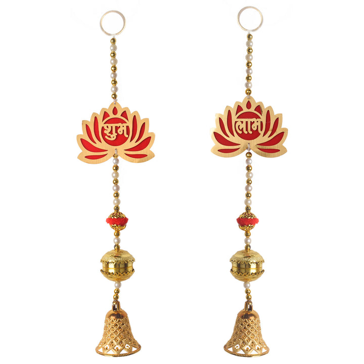 Shubh Labh 1-Tier Lotus with Bell Wall Hanging (Pair)