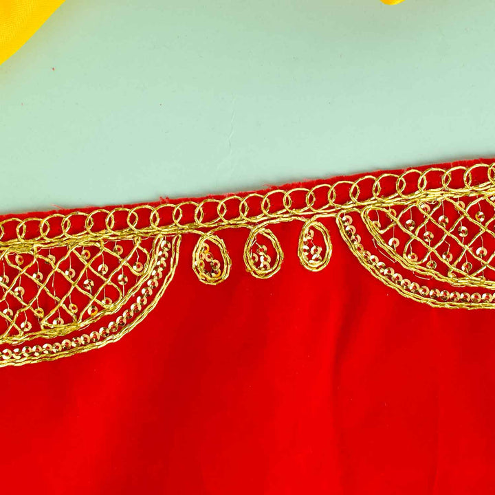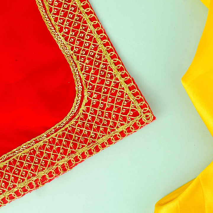 Size and Craftsmanship:Β 16 x 16 Inch Size, Made from High-Quality Velvet with Golden Lace all over the Border