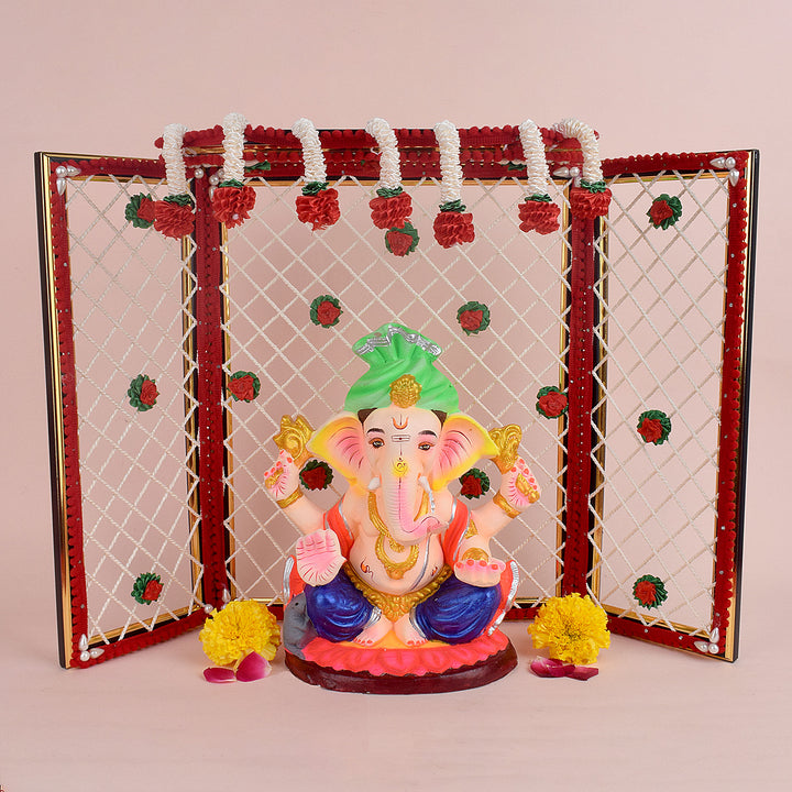 Description: On significant festivals, Phool Banglas are typically used as a decoration and a backdrop for Ganpati. These phool banglas are made by the most talented artisans in West Bengal and Uttar Pradesh. On the occasions of Ganesh Chaturthi, these are widely used at pandals and mandirs as well as homes and businesses.
