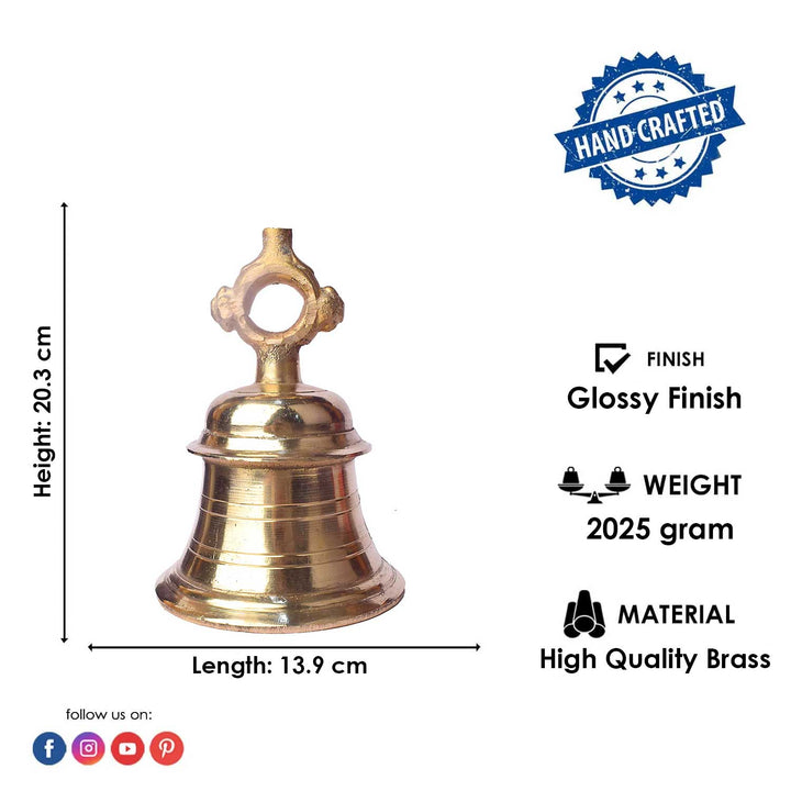 Brass Puja Bell | Brass Bell | Antique Finish Brass Bell | Hanging Temple Bell | Handcrafted Brass Pooja Bell | Exclusive Brass Bell | Brass Pooja Ghanta | 8 Inch Brass Pooja Bell | Traditional Mandir Ghanta | Brass Temple Bell | Heavy Brass Pooja Ghanta | Hanging Mandir Bell | Indian Prayer Bell | Pure Brass Devotional Bell | Brass Ghanti for Temple | Spiritual Brass Bell |