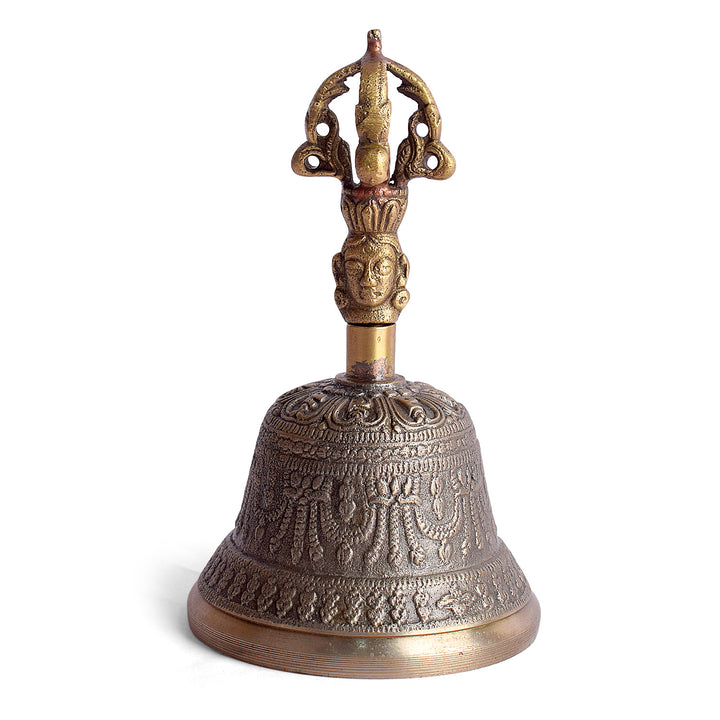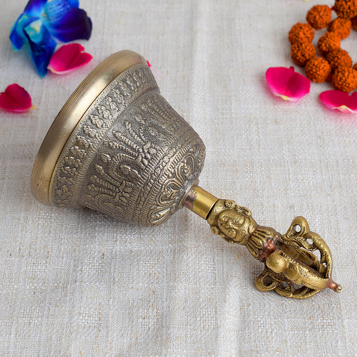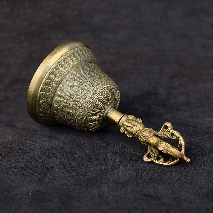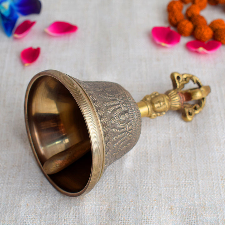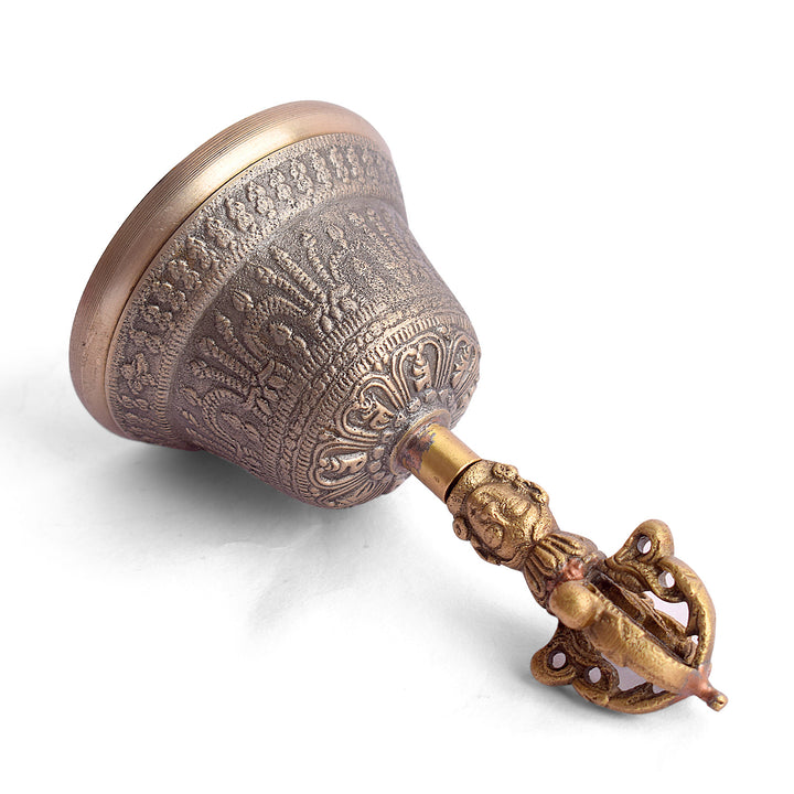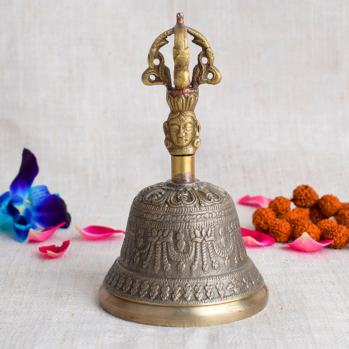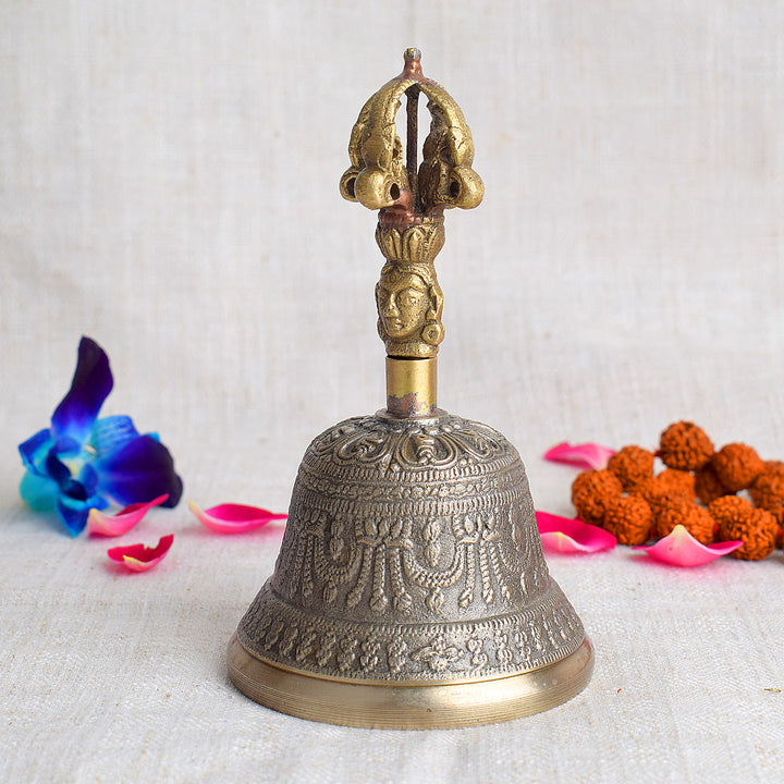 Tibetan Buddhist bell | devotional meditation bell | spiritual ritual bell | Tibetan prayer bell | harmony echo bell | Buddhist puja ghanti | traditional Tibetan bell | handcrafted Tibetan ritual bell | meditation sound bell | spiritual healing bell | Puja bell | Brass puja bell | Ghanti for temple | Hindu prayer bell | Aarti bell | Spiritual pooja bell | Temple bell |