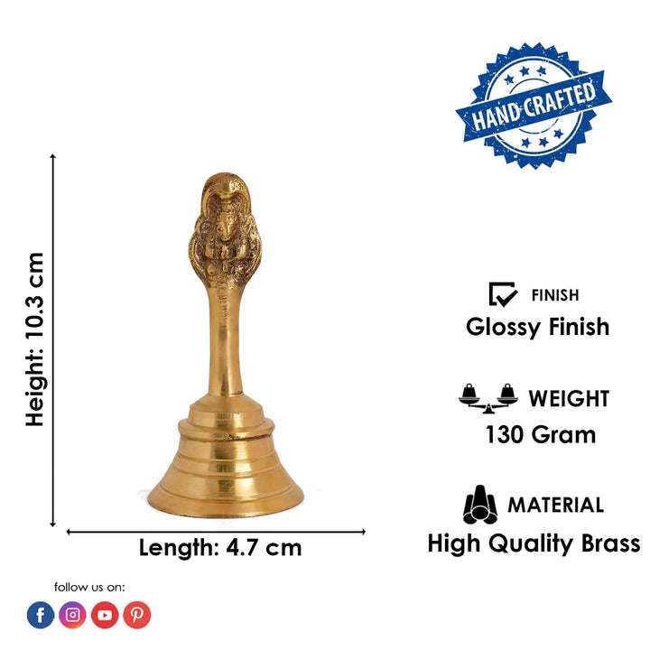 • About Product: Ringing bells are like a message to the whole world of a new day that starts with a visit to the temple/God making the start of the day- the best one. It is often called as Pooja bell or Ghanti. Handheld bells are held in the left hand and rung continuously while the various other Puja items are offered to God with the right hand. It is considered that the ringing bells ward off an evil spirit and is pleasant to God. Brass Pooja Bell is perfect to your home temple/aarti session and will have everyone mesmerized. The charming sound of this brass hand bell will reach out your prayers to the God and fill the atmosphere with divine sound and live music to the aarti during any Pooja/ceremony and also remove negative energy from your house/ office. Bring a shiny and beautifully crafted auspicious Pooja Bell Made up of Brass Material, Can Be Used for Worship At Home/Temple/Office, also an ideal gift for your loved ones.