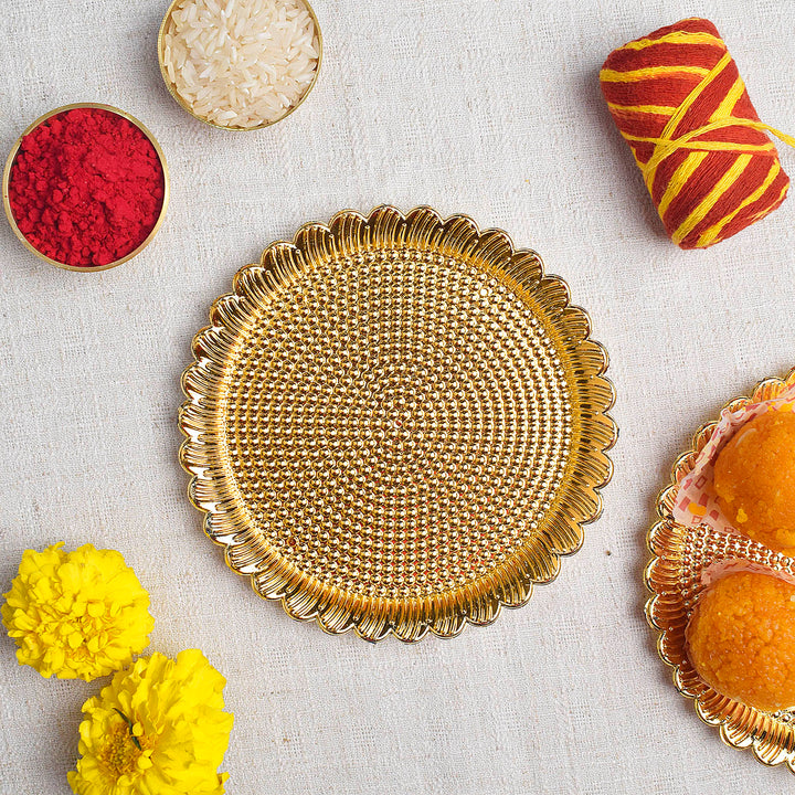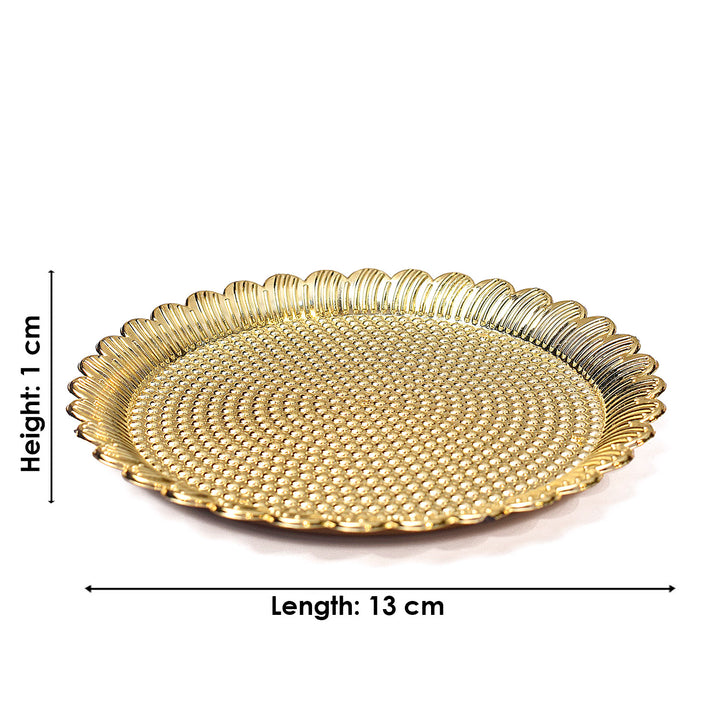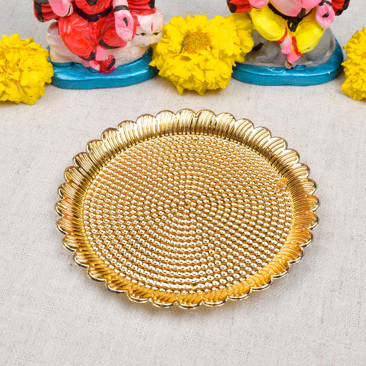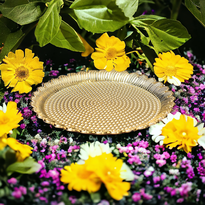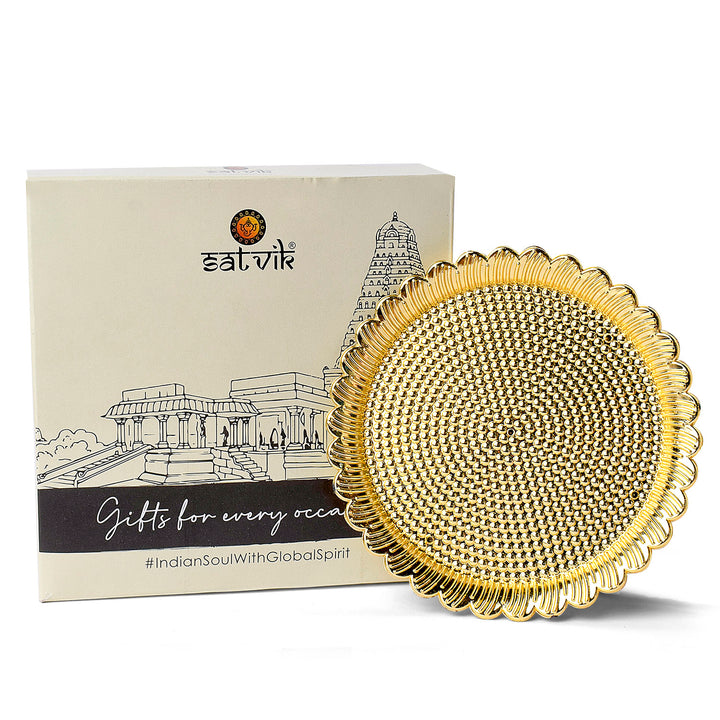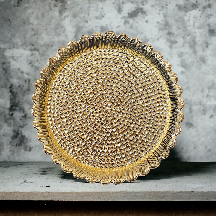 About Product: If you're searching for Indian décor to add something unique to your home, the beautiful Hindu Puja Thali beautiful Plastic thali design can easily be used as a display piece, even if you are not of the Hindu faith. For a bit of background, this piece is known as a thali, a traditional Indian serving tray. It may be filled with offerings and placed at a temple in a home as a part of puja or prayers. You can display the thali platter on a plate stand on a shelf or table and share some of the beauty and spirituality of Hindu religious practices with your friends and family.