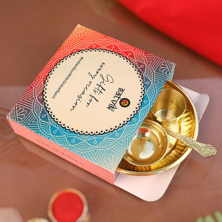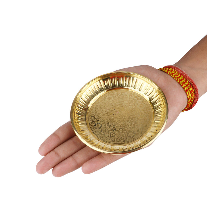 • Material: The Brass Puja Thali is made from High-Quality Brass Material