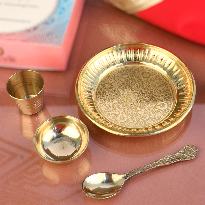 Pure Brass Laddu Gopal Pooja Bhog Thali Set (6 Inch - 7 Inch)