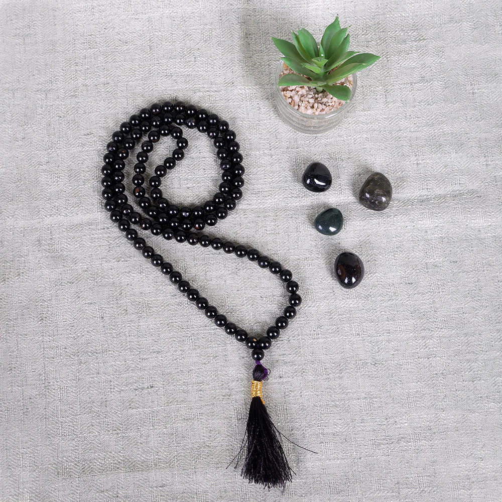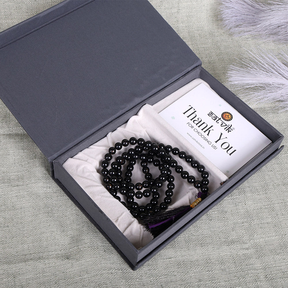 Buy Premium Hakik Jap Mala Crystal Black turmaline | Satvikstore.in – satvikstore.in