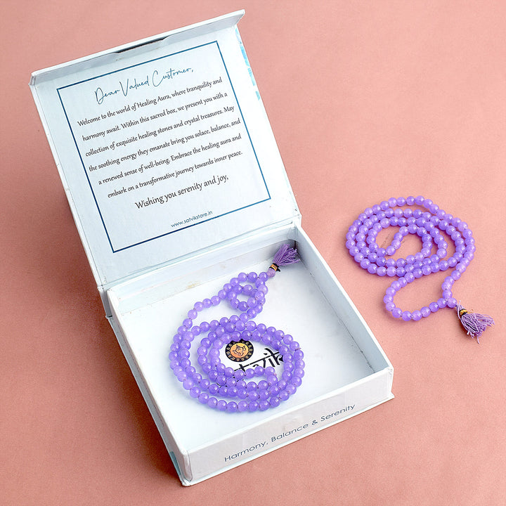 Light Purple Hakik Mala | Amethyst Jap Mala | Soothing Stone Mala | Spiritual Beads | Meditation Mala | Crown Chakra Mala |
