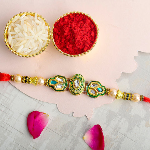We understand the significance of finding the ideal Rakhi that reflects your loved one's personality, style, and individuality. Our extensive collection encompasses an array of options, ranging from traditional Rakhis that evoke nostalgia and capture the essence of cultural heritage, to trendy designer Rakhis that exude contemporary charm and showcase artistic finesse. Discover our exquisite assortment of Lumba Rakhi, Kids Rakhi, Designer Rakhi, Decorative Rakhi, Kundan Rakhi, Zardosi Rakhi, Pearl Rakhi, Stone Rakhi, Om Rakhi, Ganesha Rakhi, Rudraksha Rakhi, Bracelet Rakhi, and many more, each meticulously crafted with attention to detail to add a touch of elegance, uniqueness, and joy to your Rakhi celebrations.
