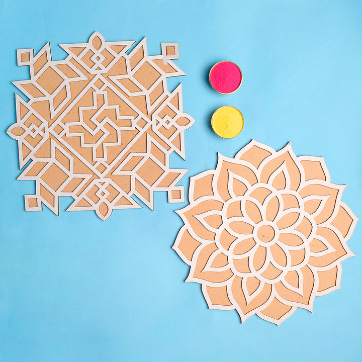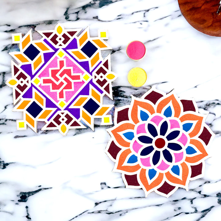 Set of 2 Rangoli Stencils with a Splash of Colors