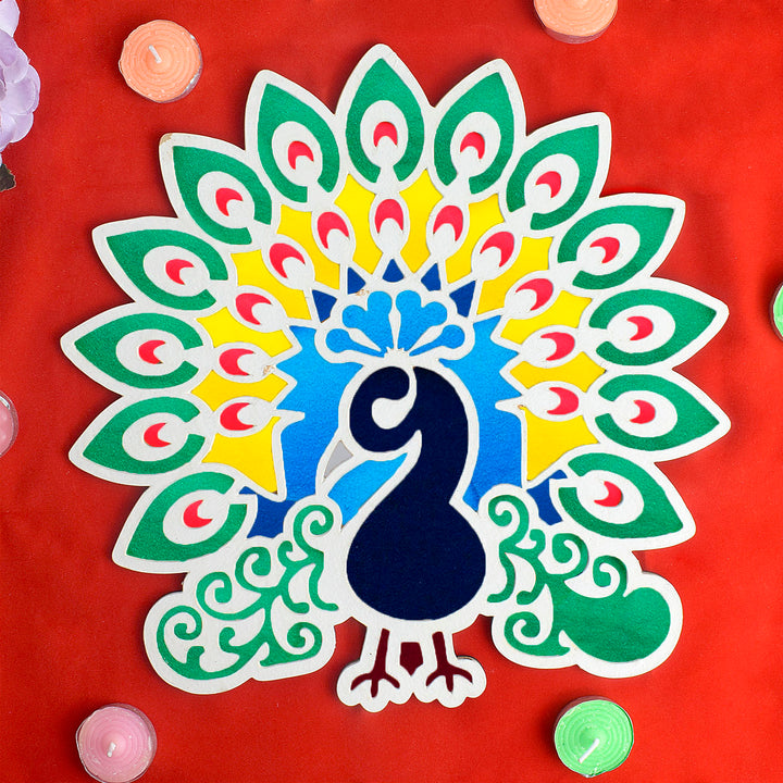 Package Contents : 1 PCS Reusable MDF Rangoli Edition Peacock Design