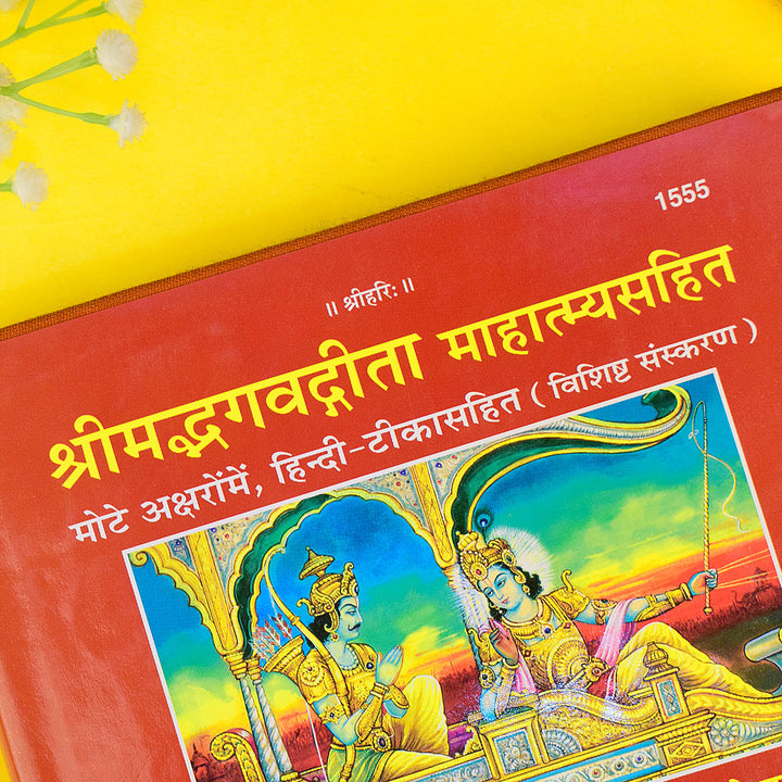Shrimad Bhagwad Gita 1555 | Bhagavad Gita Hindi book | Divine Hindu scripture | Krishna Arjuna Gita | Spiritual Gita book | Sacred Hindu text | Bhagavad Gita publication | Gita in Hindi | Religious Hindu literature |