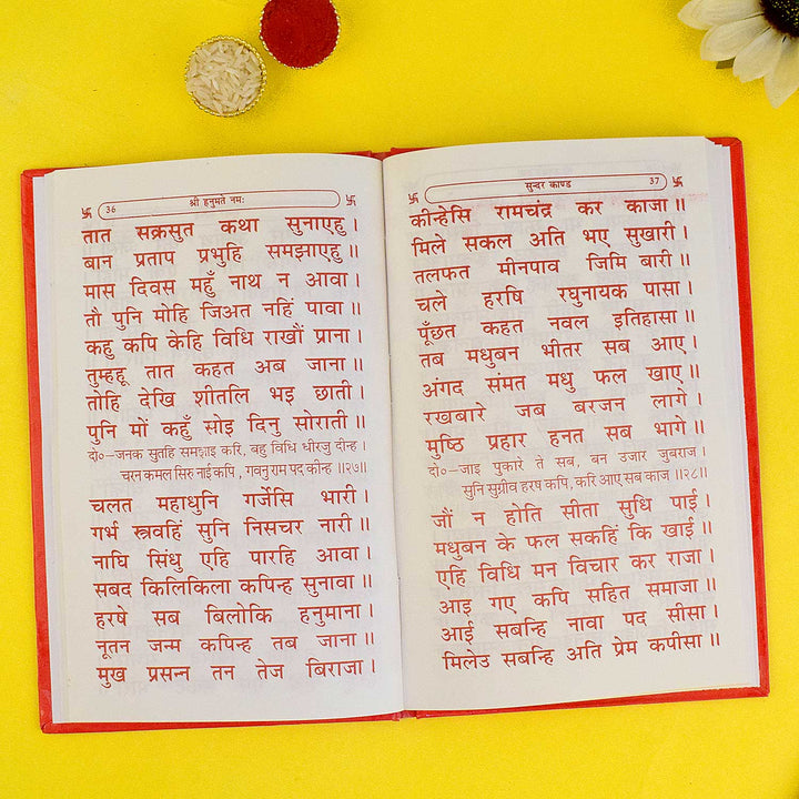 Considered highly auspicious, reading or reciting Sundara-Kaanda is believed to remove obstacles, bring peace, and grant protection and blessings from Lord Hanuman. The book is a source of immense spiritual power and is often read during times of distress, as it invokes hope, courage, and divine support.