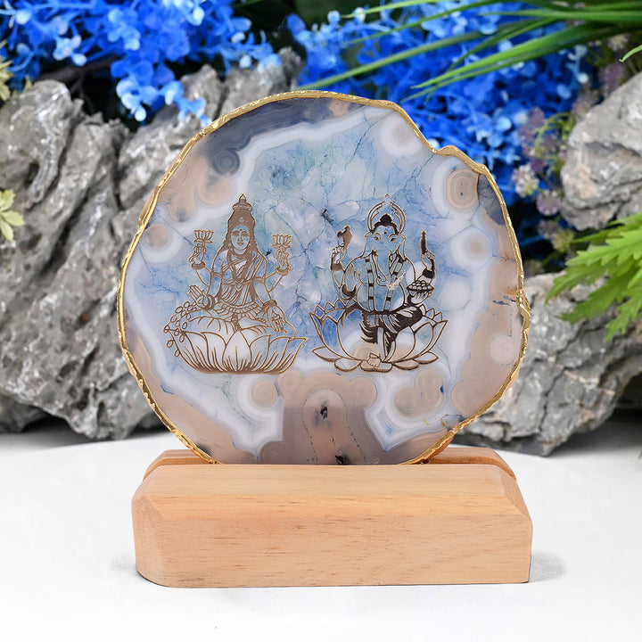 Buy Online Agate Stone Stand featuring Laxmi & Ganesha| Satvikstore.in – satvikstore.in