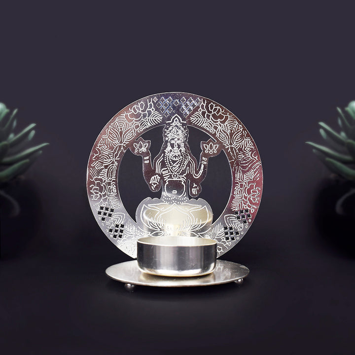 • Item Name: Silver Lakshmi Tea Light Candle Holder