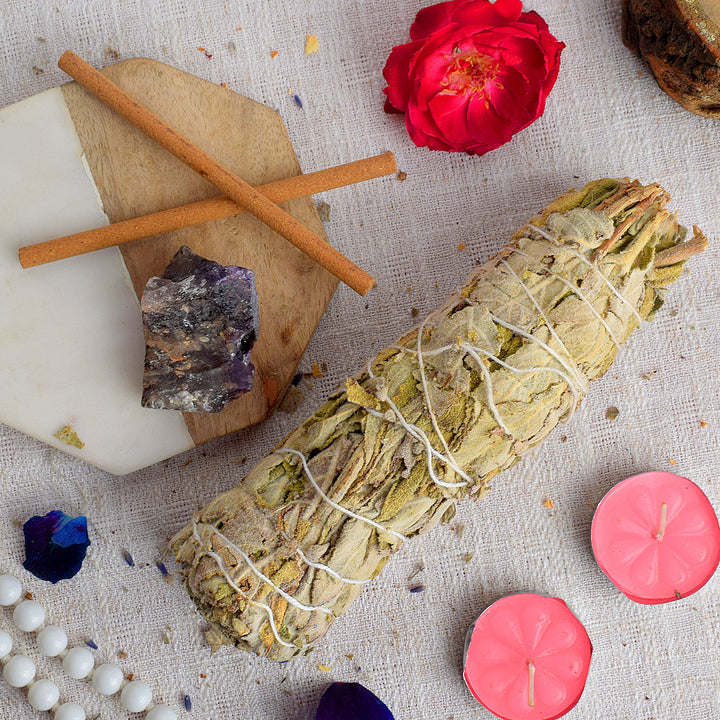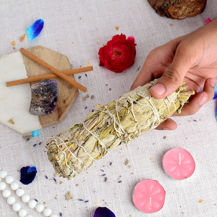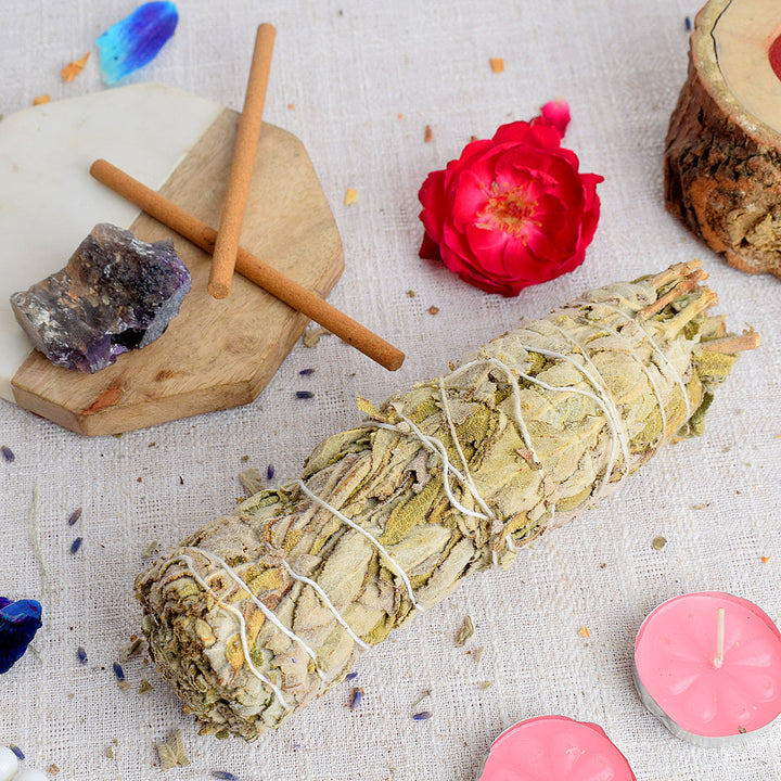 • About Product: We at Satvikstore.in Introducing our exquisite Mexican Incense Sage with Amethyst Crystal Healing Smudge. Immerse yourself in the enchanting aroma of Mexican incense sage while harnessing the calming and protective energy of amethyst crystal. This powerful combination purifies your space, promotes relaxation, and enhances spiritual connection. Elevate your rituals with our handcrafted smudge, meticulously crafted for superior quality. Experience the transformative benefits of Mexican Incense Sage with Amethyst Crystal Healing Smudge and invite tranquility, clarity, and positive energy into your life. Create a sacred space that nurtures your mind, body, and soul.