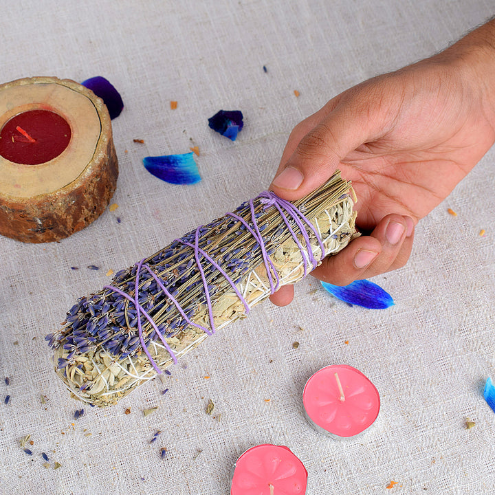 • About Product:Β We at Satvikstore.in Introducing our White Sage Lavender Healing Smudges - a perfect blend of cleansing white sage and soothing lavender. Handcrafted with utmost care, these smudges harness the power of traditional smudging rituals and the calming properties of lavender. Experience the transformative aroma as the sacred smoke purifies your space, promoting balance and tranquility. Ideal for rituals, meditation, or simply creating a serene ambiance. Shop now and immerse yourself in the harmonizing energy of White Sage Lavender Healing Smudges, elevating your spiritual practice and bringing a sense of peace and well-being to your sacred sanctuary.