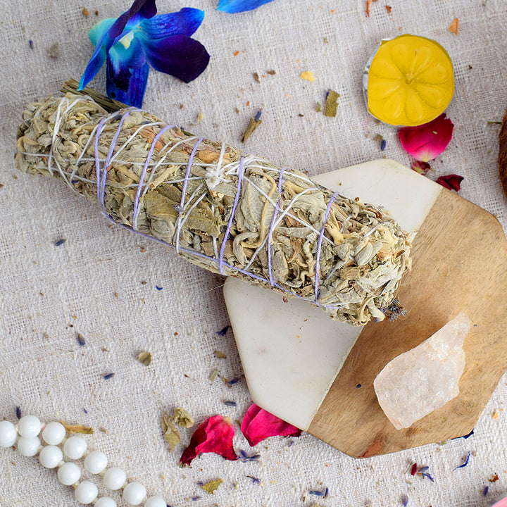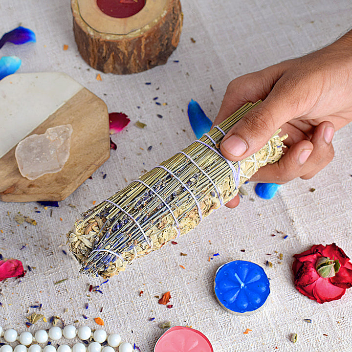 Shop White Sage with Lavender & Clear Quartz Smudge – Satvikstore.in – satvikstore.in