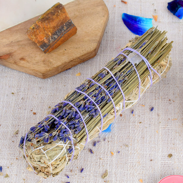 • About Product:Β We at Satvikstore.in Experience the harmonizing blend of White Sage and Lavenders combined with the grounding energy of Tiger Eye Crystal Healing Smudges. This unique smudge bundle cleanses negative energies, promotes serenity, and enhances focus. The White Sage purifies the space, while Lavenders add a soothing aroma. Tiger Eye Crystal brings balance and strength to your surroundings. Perfect for meditation, energy clearing, and spiritual practices.