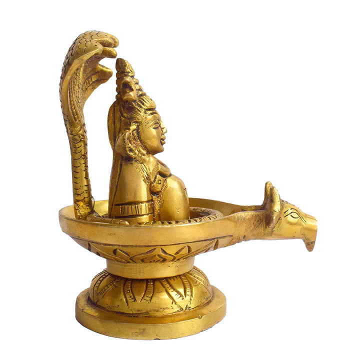 About Product:  The 4.7 Inch Brass Shivalingam and Sheshnag Figurine is a beautifully crafted spiritual idol that combines Lord Shiva's powerful energy with the divine presence of Sheshnag. Made from high-quality brass, this figurine features the Shivalingam, symbolizing Lord Shiva's cosmic power, with the sacred serpent coiling around it.