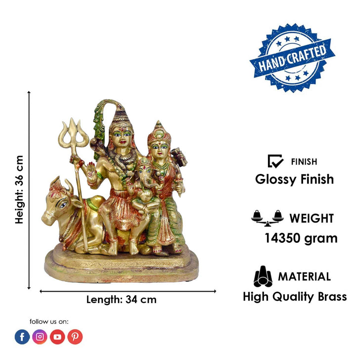 • About the Product: 14 Inch Brass Shiv Parivar Idol with Nandi