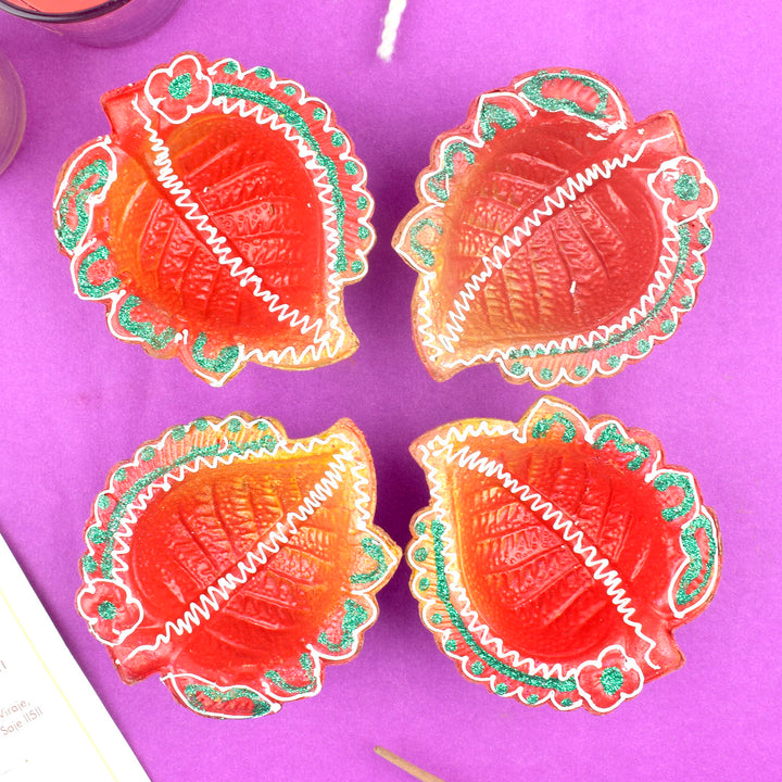 Leaf Design Celebrating Diwali with Clay Diyas Set of 4
