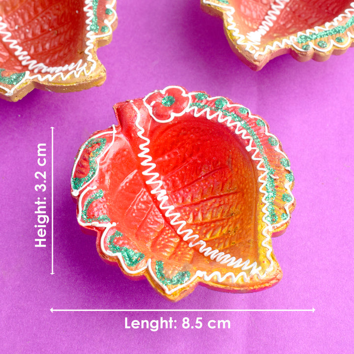 Item Name: Leaf Design Celebrating Diwali with Clay Diyas Set of 4