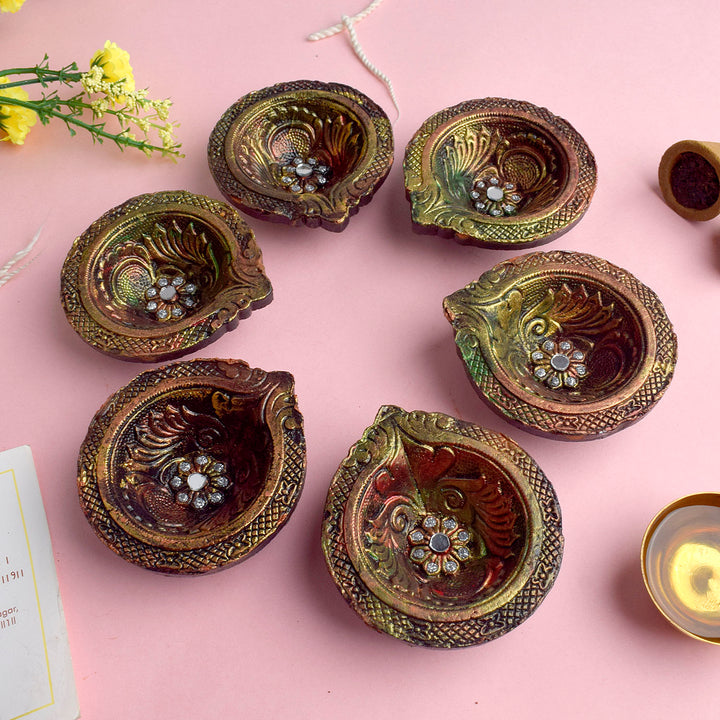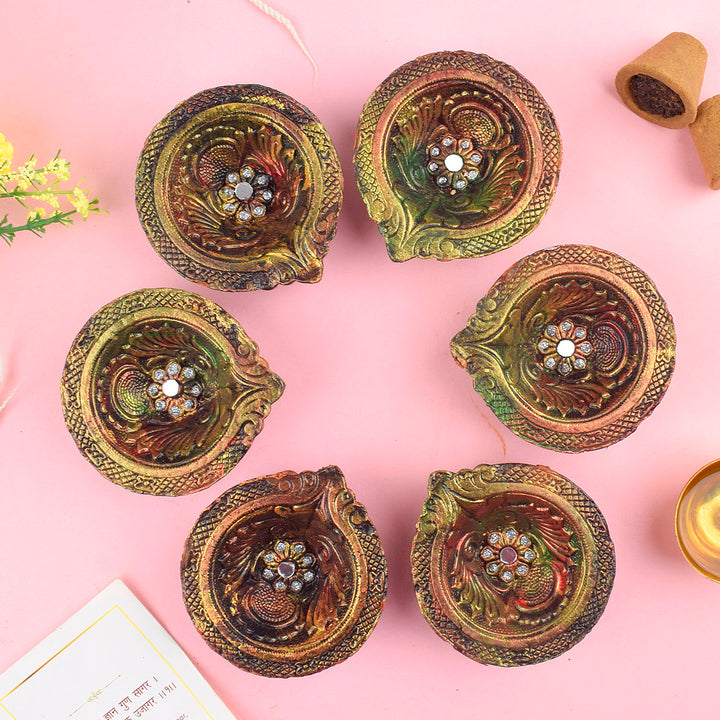 Earthen Elegance Traditional Clay Diyas for a Bright Diwali Set of 6