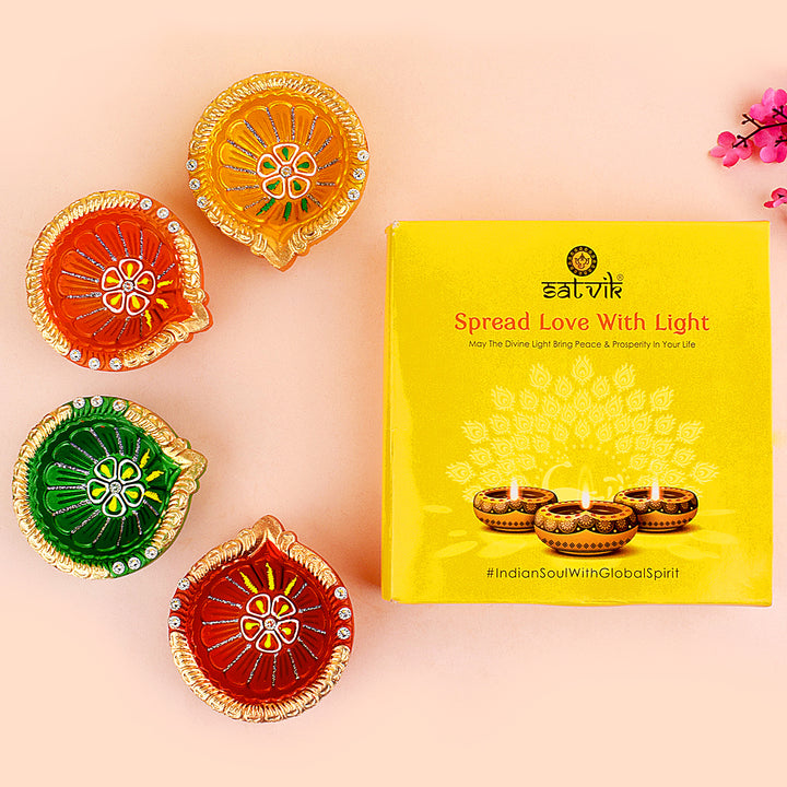 Buy Vibrant Clay Diyas: A Kaleidoscope of Colors | Satvikstore.in – satvikstore.in