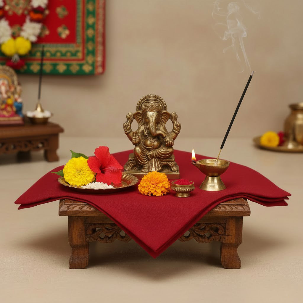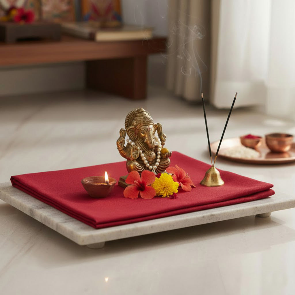 This vibrant red cotton cloth, measuring 1.25 meters, is a sacred essential for various Hindu rituals and religious ceremonies. Red symbolizes strength, power, and devotion—making it the perfect fabric to offer during poojas, cover deity idols, or decorate sacred spaces.