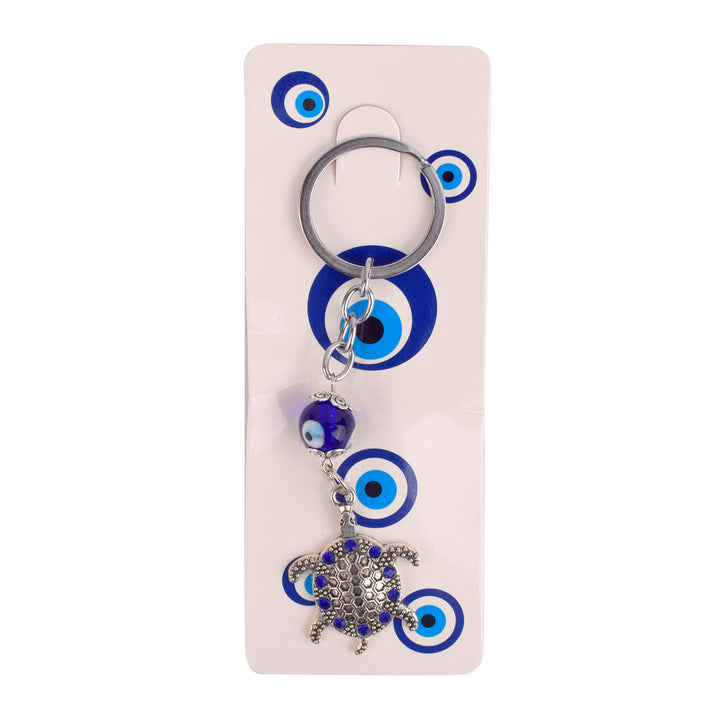 Item Name: Β Blue Bead Silver PlatedΒ  Evil Eye Turtle Keychain